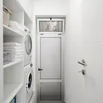 تشتمل مرافق الحمام أيضًا على حوض الاستحمام والدوش المنفصل والمرحاض المنفصل. يتمّ أيضًا توفير النشَّافة وملاءات الحمام والمناشف.